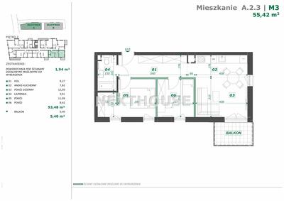 43-pokojowy apartament, nowy budynek, Gliwice, ul. Moniuszki, pow. 58,16 m² + balkon Na sprzedaż nowoczesne ...