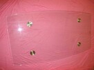 Szyba hartowana o długości 110 cm i szerokości 60 cm w najszerszym miejscu o lekko owalnym dłuższym boku.. Cena 49 pln